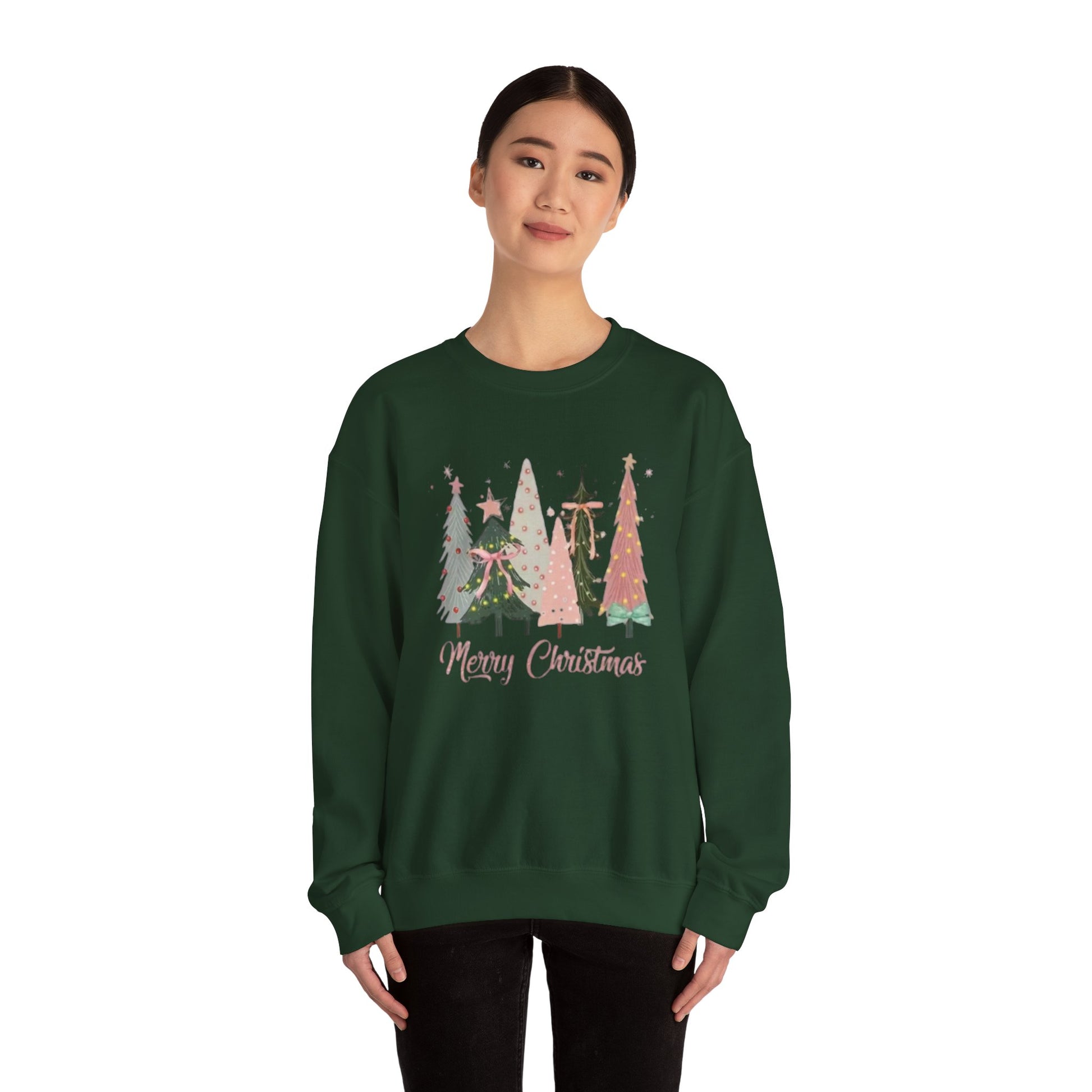 Christian Merry Christmas Sweatshirt | Faith-Based Holiday Apparel with Christmas Trees