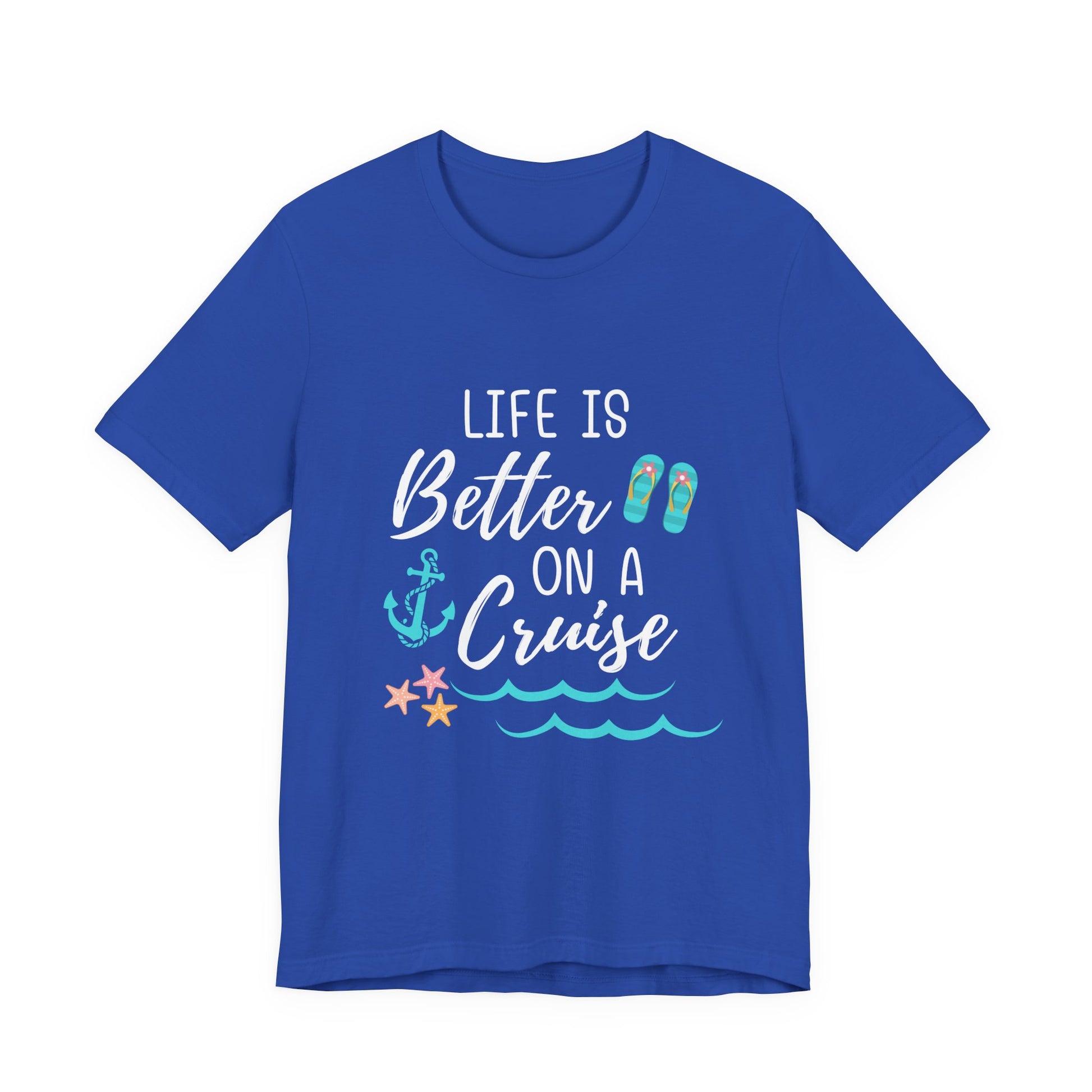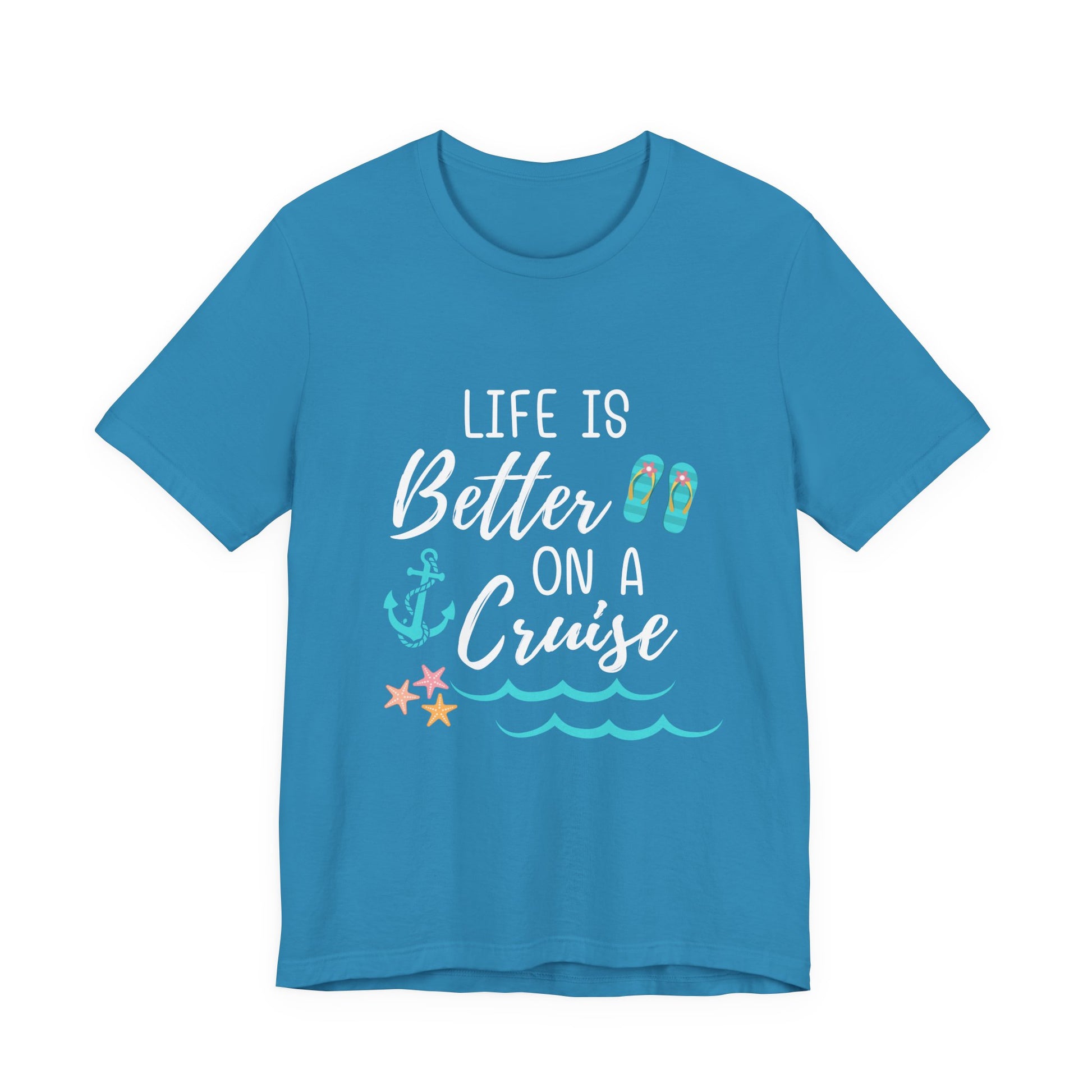 For those who believe paradise starts the moment you step on deck, our Life Is Better On A Cruise tee says it all. With a playful nautical design featuring an anchor, starfish, and gentle ocean waves, this shirt is perfect for capturing the joy of cruising—whether you’re relaxing on the lido deck, exploring tropical ports, or dreaming of your next voyage.