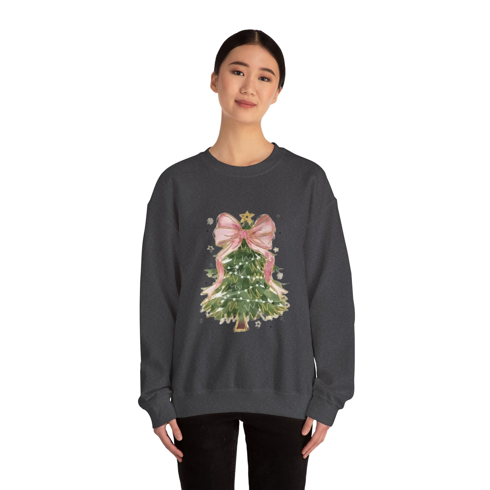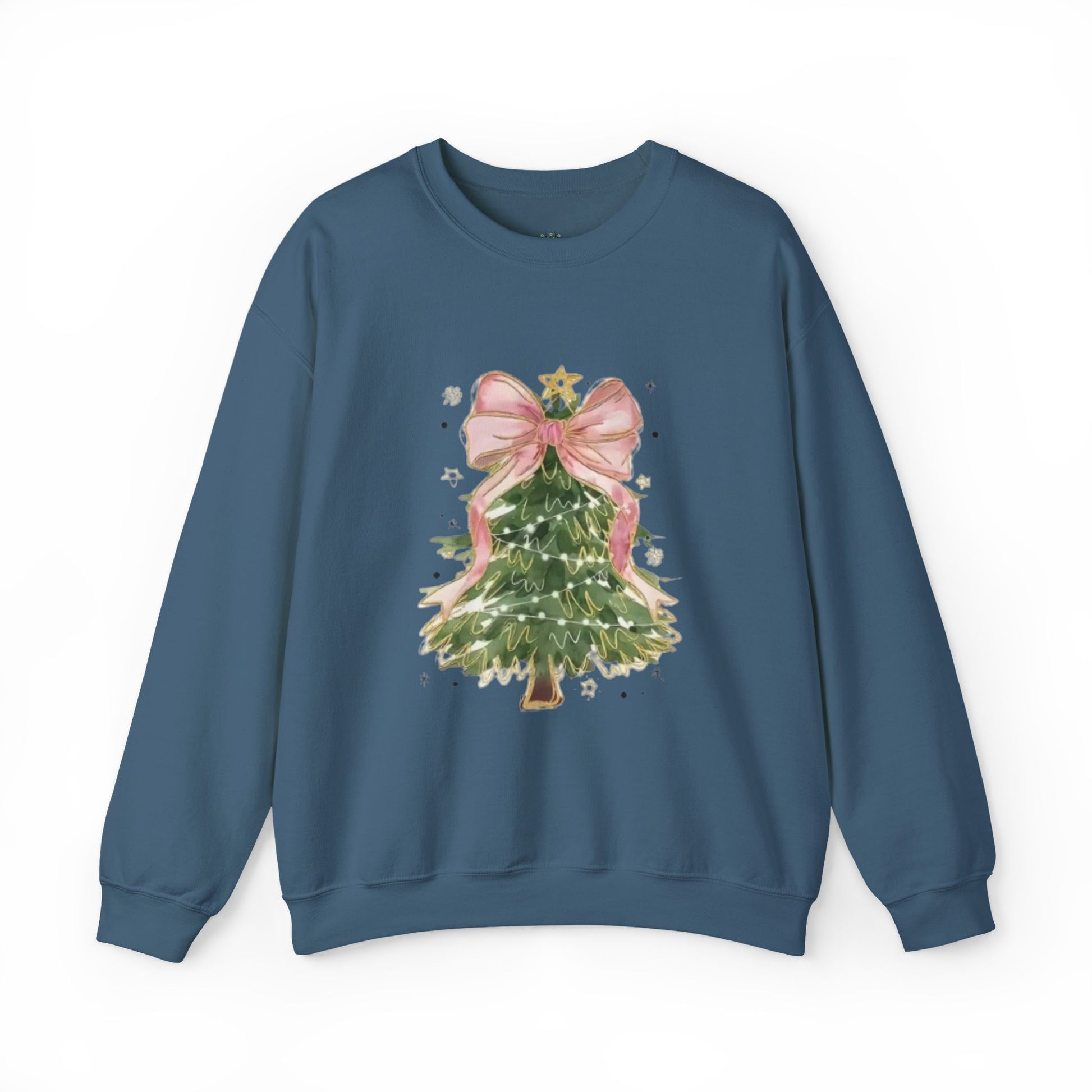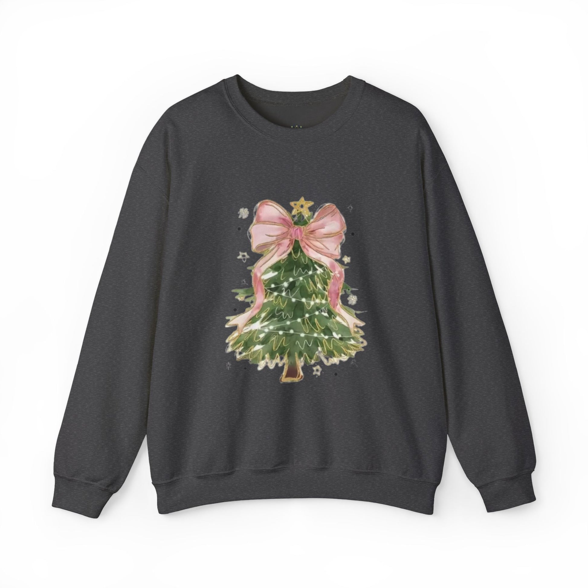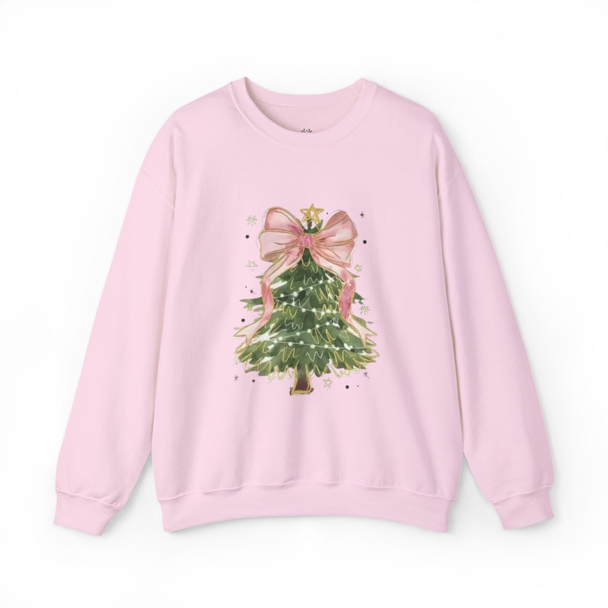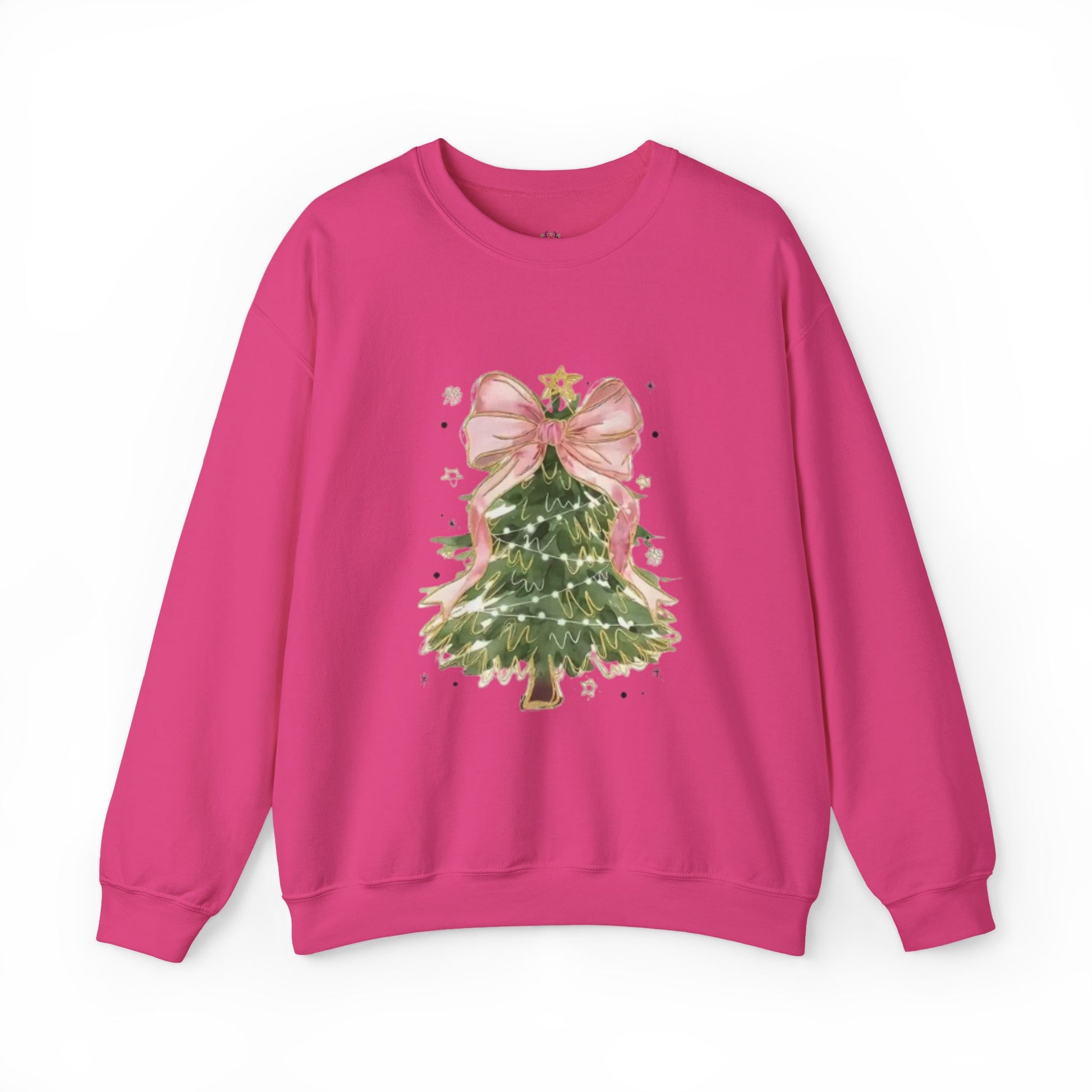 Faith-Inspired Christmas Tree Sweatshirt with Pink Bow | Christian Holiday Apparel