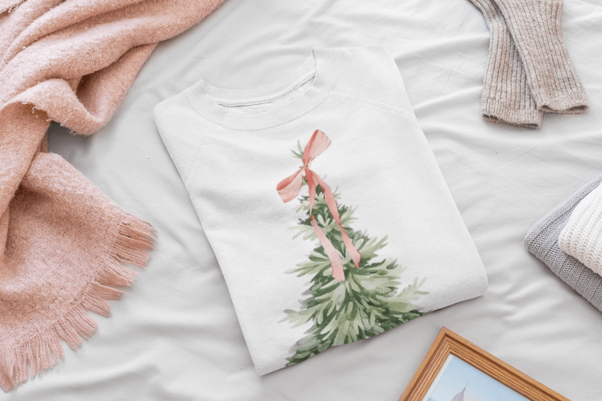 Add festive faith and style to your wardrobe with our Faith-Inspired Christmas Tree Sweatshirt. This cozy Christian sweatshirt features a hand-painted Christmas tree topped with a red bow, symbolizing joy, hope, and the true meaning of the season. Perfect for holiday gatherings, church events, or everyday wear, this faith-based Christmas sweatshirt also makes a thoughtful gift for women who love sharing their faith during Christmas.