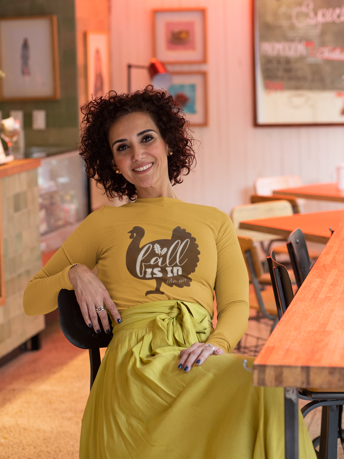 Made from soft, breathable fabric, this tee offers comfort and versatility, keeping you cozy while looking festive. Pair it with jeans, a cardigan, or boots for an effortless autumn outfit you’ll love to wear all season long.