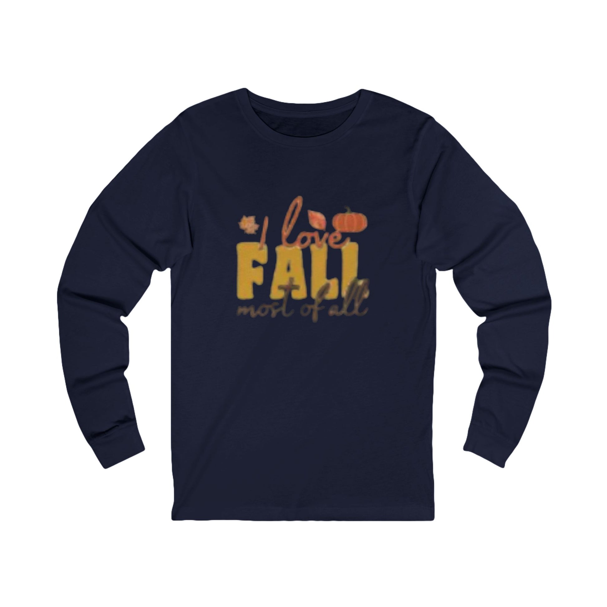 "I Love Fall Most of All" Long-Sleeve Tee, Perfect for Autumn Celebrations, Casual Wear, Gift Ideas
